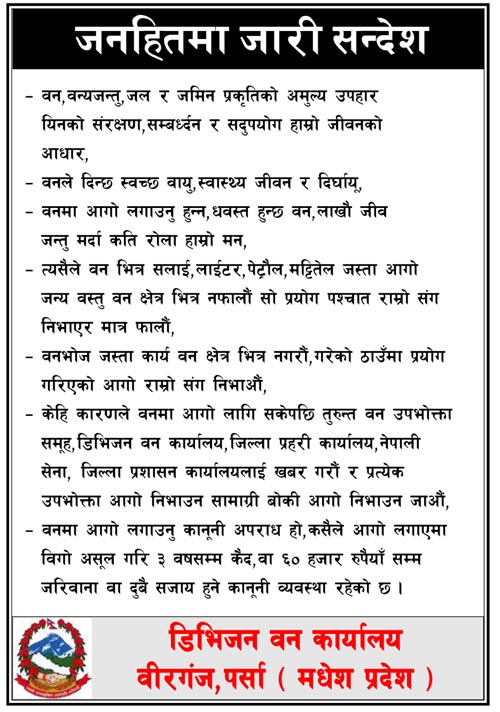 वीरगंज, १९ बैशाख । सशस्त्र प्रहरी बल पर्साले श्रोत नखुलेको