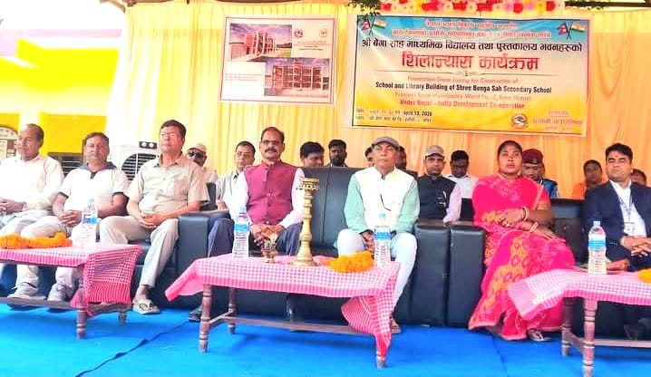बीरगञ्ज / मधेस प्रदेशको बारा जिल्लाको प्रसौनी गाउँपालिका वडा नम्बर २ मा रहेको श्री बेगा साह माध्यमिक विद्यालयको विद्यालय तथा पुस्तकालय र भवन निर्माणको सिलन्यास आज भारतीय महावाणिज्य दूतावास बीरगञ्जका महावाणिज्यदूत श्री डि,एस, मिना ज्यू र प्रसौनी गाउँपालिकाका अध्यक्ष विनोद प्रसाद जयस्वालले संयुक्त रूपमा उक्त नवनिर्मित भवनको सिलन्यास गर्नुभएको हो।