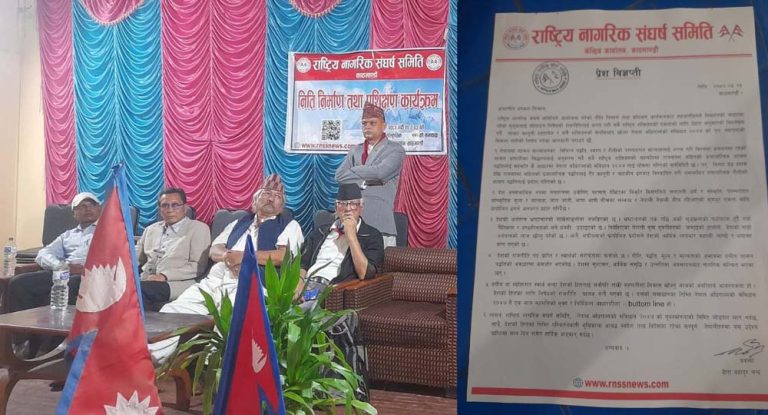वीरगंज, २३ भदौ । राष्ट्रिय नागरिक संघर्ष समितिले सोमवार नीति निर्माण तथा प्रशिक्षण कार्यक्रम काठमाडौंमा सम्पन्न गरेको छ । कार्यक्रममा